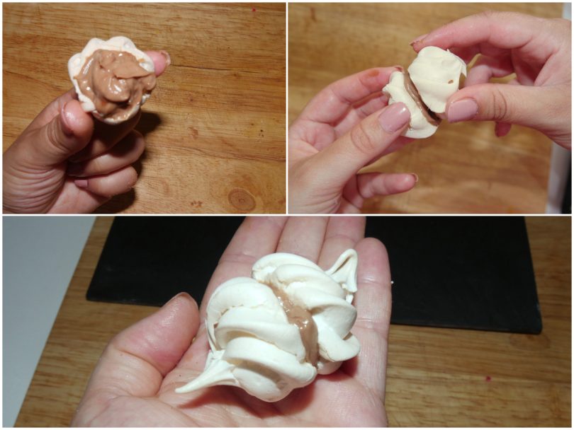 Associez les meringues 2 par 2 avec un peu de crème au milieu.