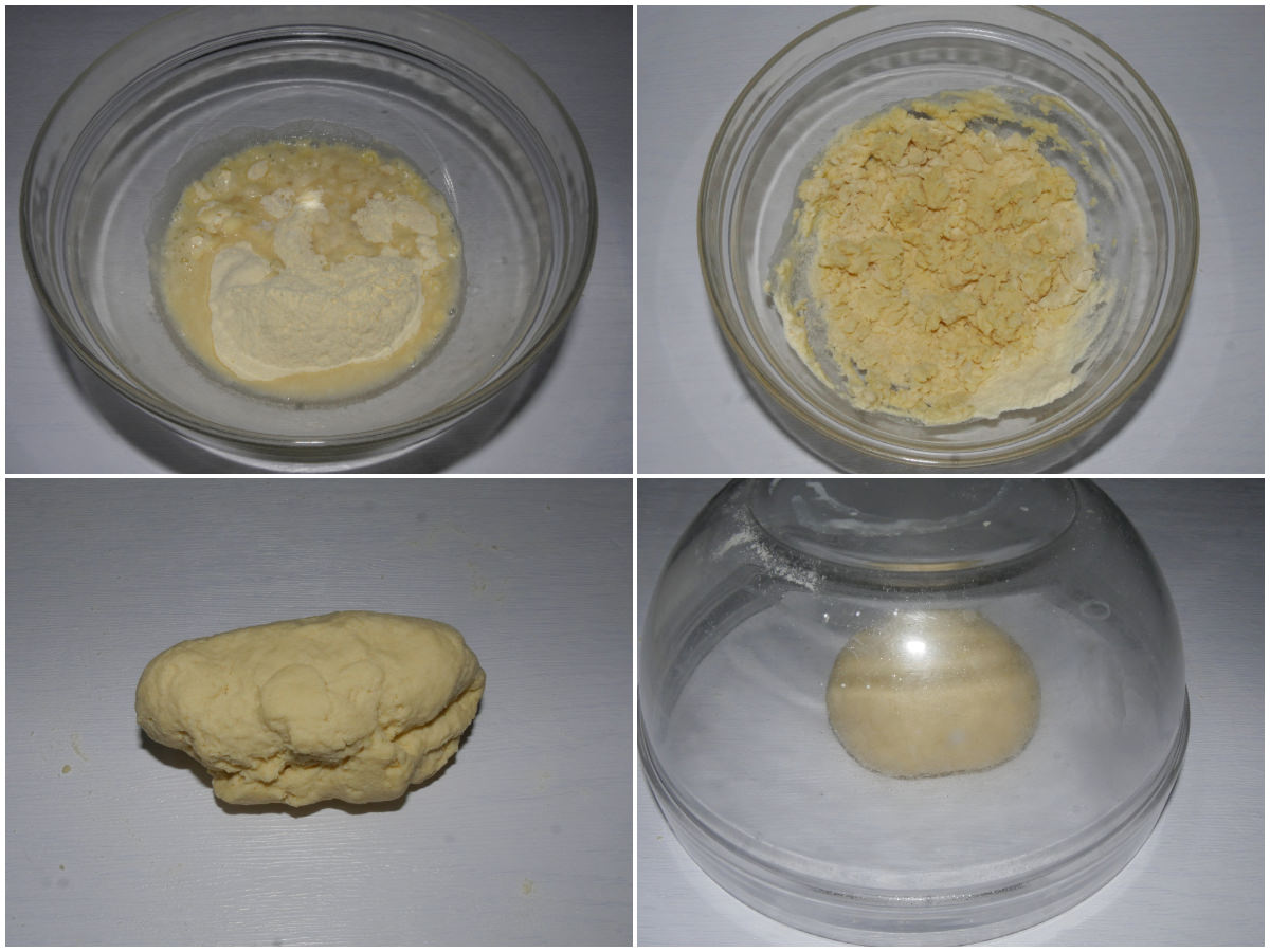 Préparez la pâte en mélangeant tous les ingrédients dans un bol et en travaillant à la main jusqu’à l’obtention d’une pâte homogène, puis laissez-la reposer, à couvert, pendant au moins 30 minutes, afin d’étirer à nouveau le filet de gluten.