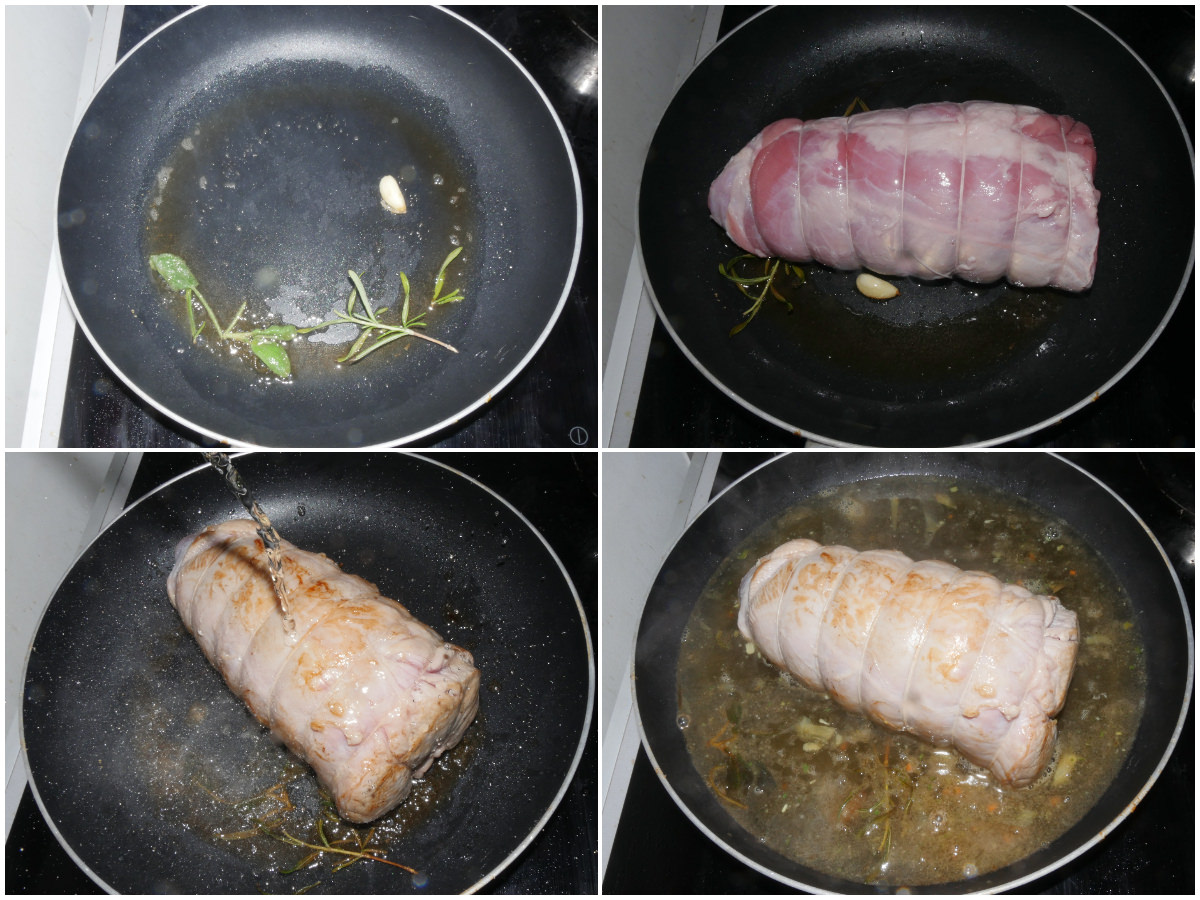 Ajouter la viande (après l’avoir bien ficelée : voici le guide pour voir comment faire) et bien la faire dorer de tous côtés pour sceller les jus à l’intérieur, puis mélanger avec le vin blanc et, une fois évaporé, ajouter de l’eau (ou bouillon, les légumes et la viande sont bons) jusqu’à ce que la moitié de la viande soit recouverte et cuire à feu doux pendant 1 heure : à mi-cuisson, salez et poivrez et retournez la viande.