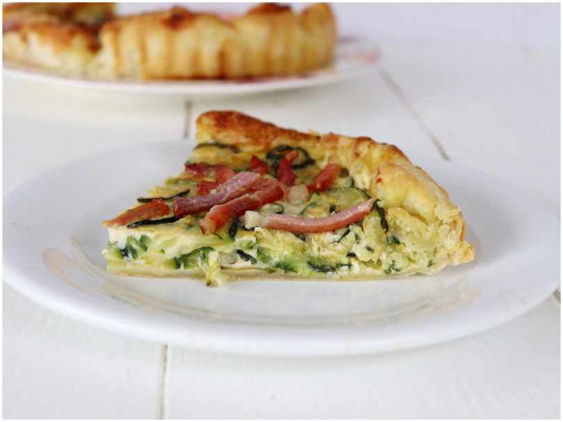 La tarte salée aux courgettes et au speck est prête, laissez-la refroidir au moins avant de la couper en tranches et de la servir.